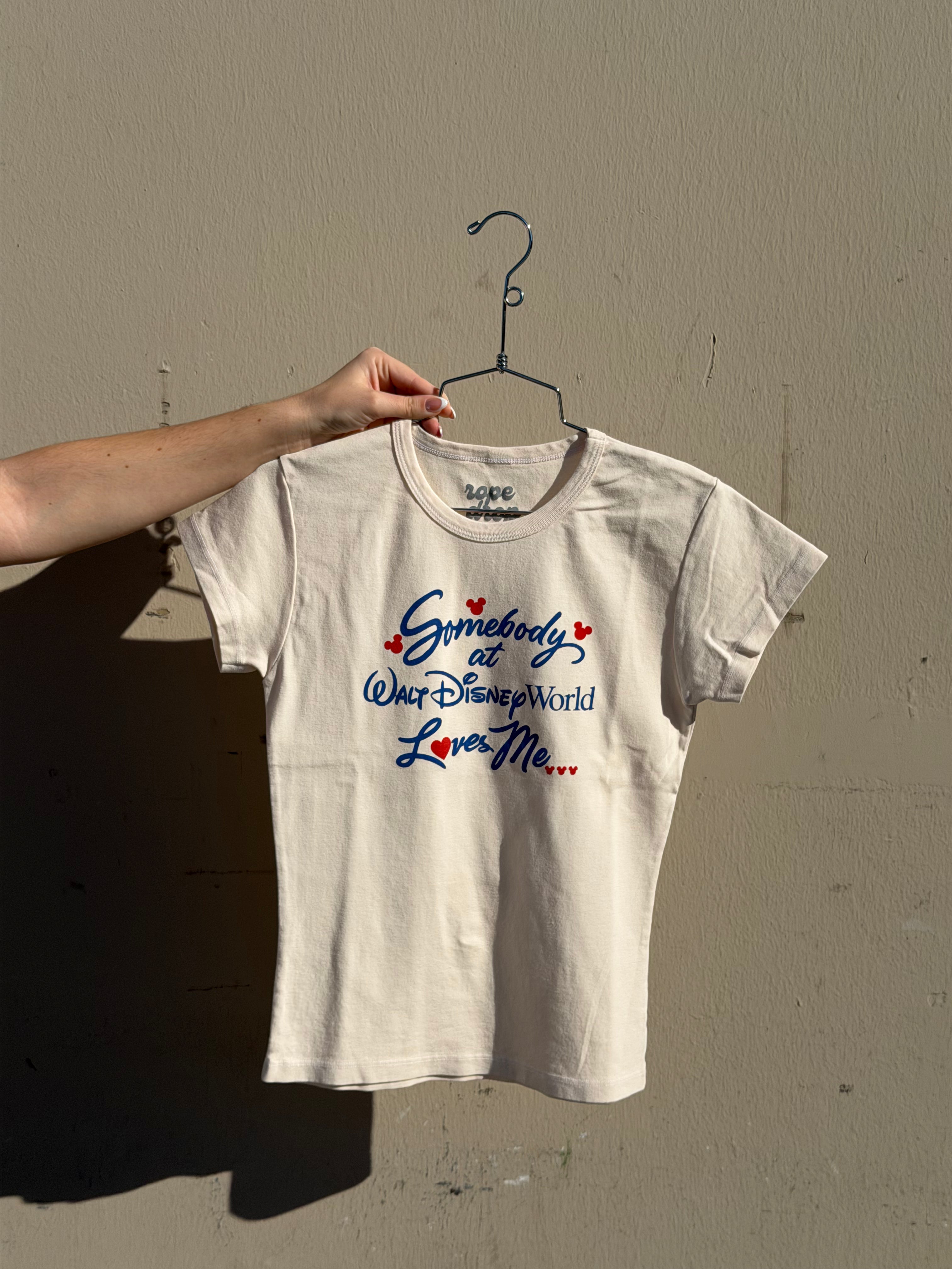 Love is in the air… and somebody at the parks loves you 🥰🏰💌 This retro inspired moment is printed on a women’s full length tee for that everyday, wear-it-anywhere fit.