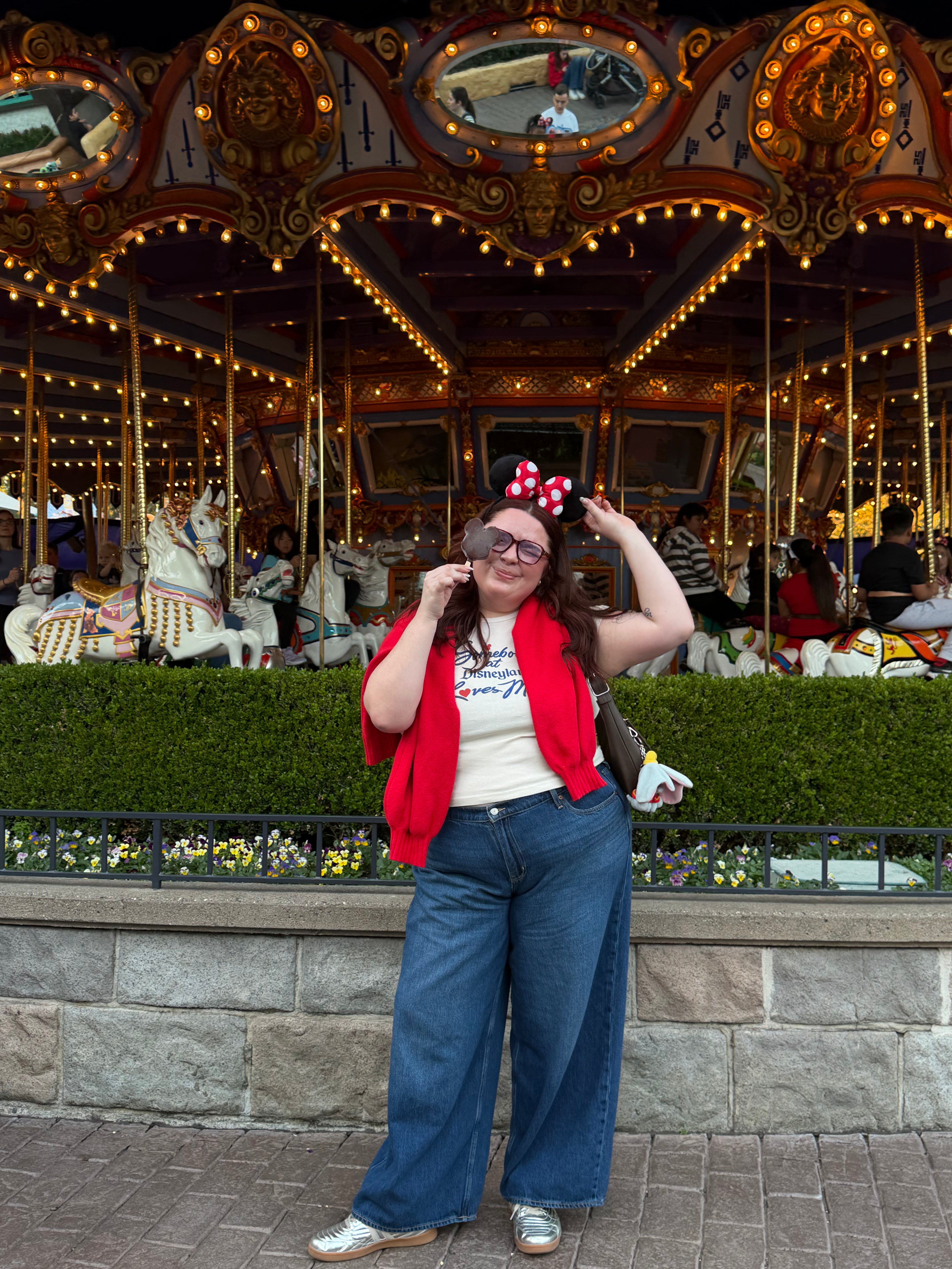 Mimi is wearing a Large